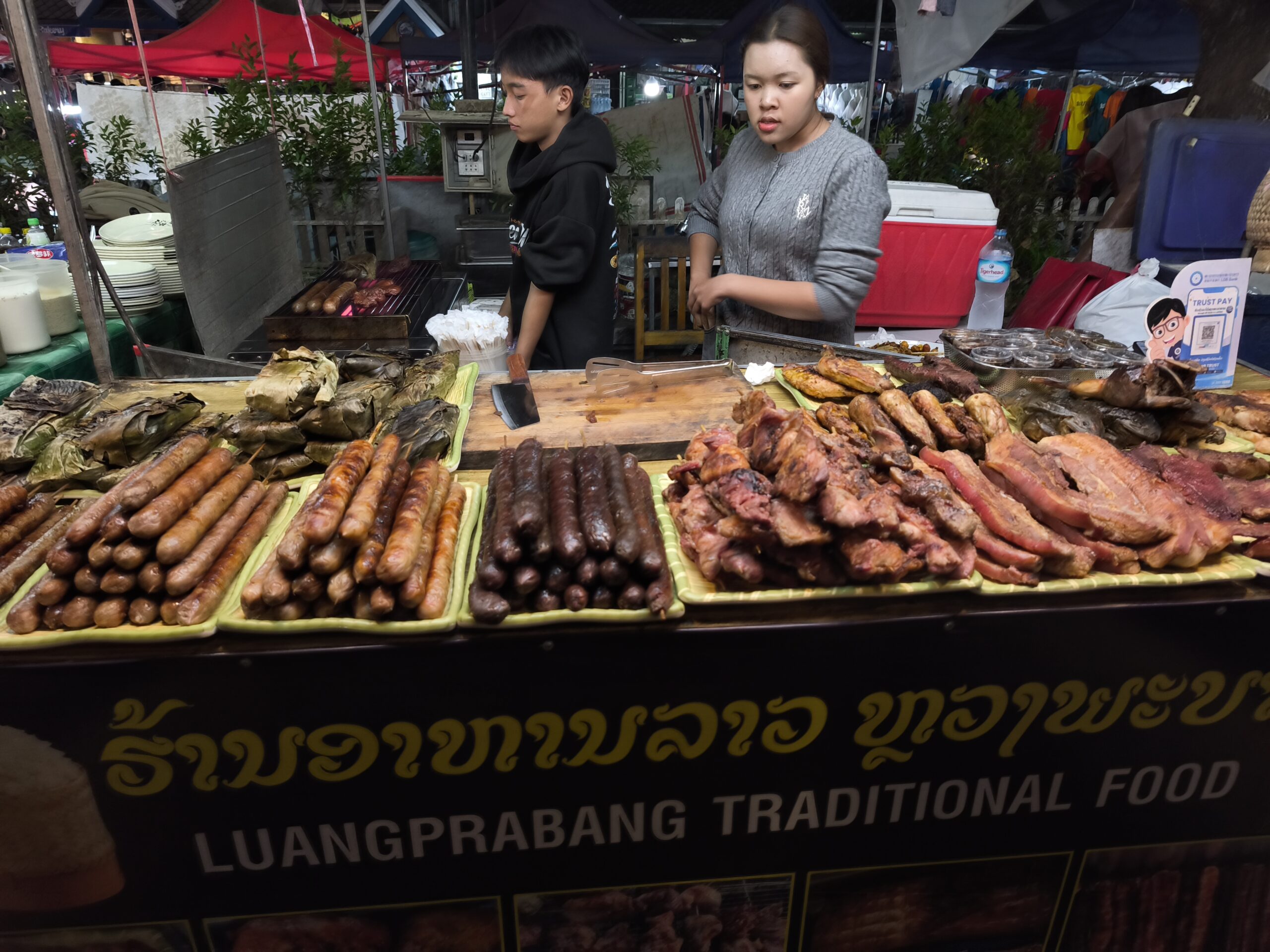 Baguette: Busca un puesto de Khao Jii (el bocata laosiano). Pan crujiente, paté, verduras encurtidas y la proteína que elijas. Por menos de 2€ tienes una comida completísima.
