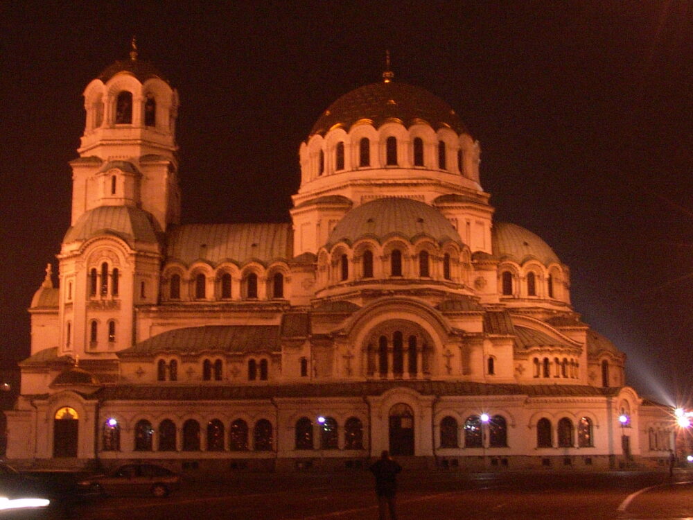 Es la catedral ortodoxa de Sofía, construida en estilo neo bizantino. Es el monumento a ver en Sofía, es un edificio inmenso que con sus cúpulas le dan un aire diferente. A más puedes verla 360º, ya que se encuentra en una explanada de la ciudad, sola, sin nada que moleste su vista.